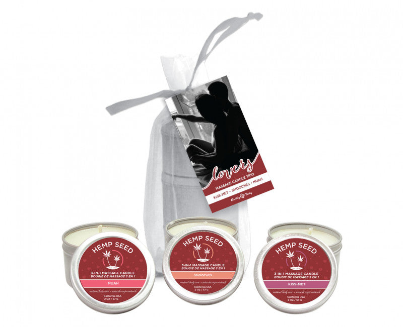 Specially formulated to melt a couple degress above body temperature, these 3-in-1 massage candles don't just provide romantic light and fragrance - the melted wax can also be used as a moisturizer or warm massage oil. Hemp seed oil, the primary ingredient in these candles, has a fantastic slip factor for massage and because it sinks into the lipid layer of the cells, skin is left soft and moisturized, without any greasy feel.