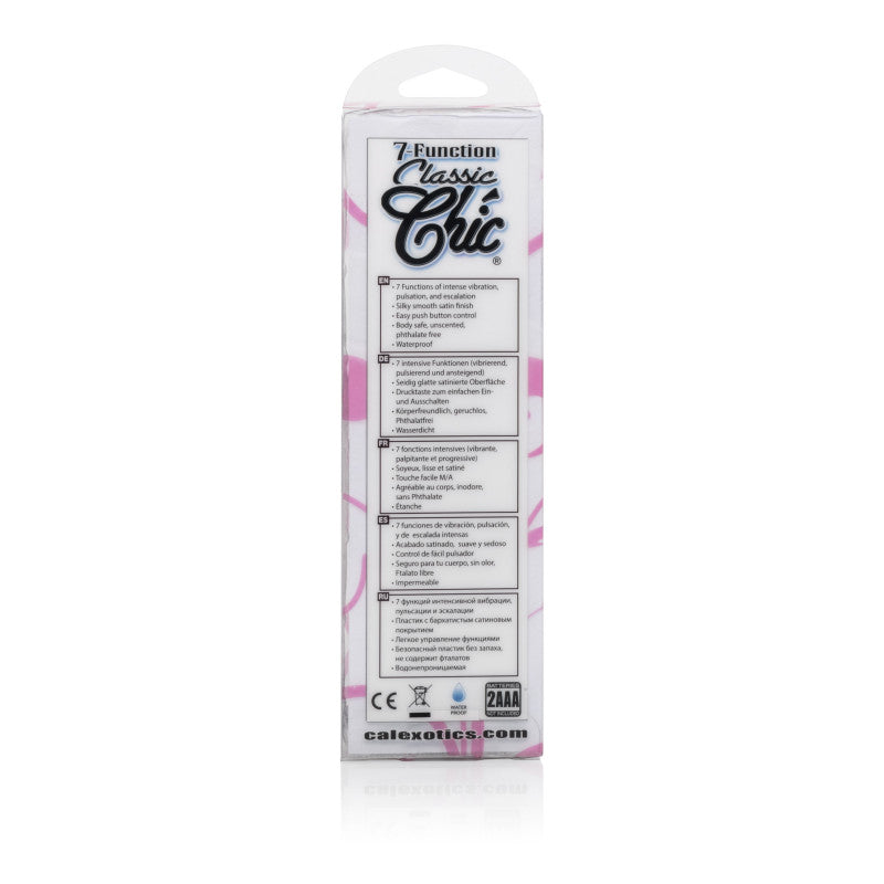 • 8 intense functions of vibration, pulsation and escalation. Silky smooth satin finish. Easy push button operation. ABS with PU Cote (massager) ABS with silver plating (decor) silicone (button)