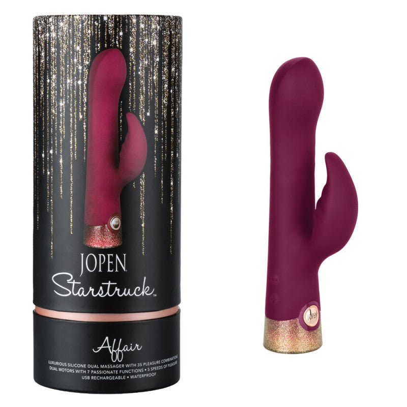 Give yourself over to a sensual love affair with the flexible Jopen Starstruck Affair. This deep rumbling beaded rabbit thrills with a rotating shaft, flickering teaser and 35 functions of vibration.