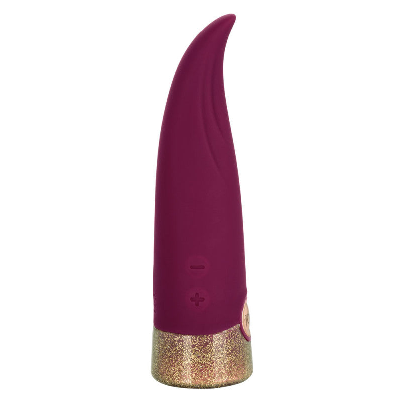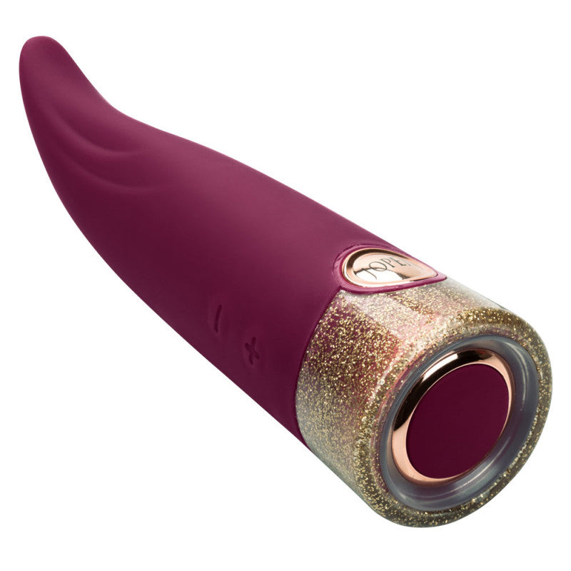 The curved massager has been created to flex and move with your body while the flickering tip tickles your most sensual curves. The supple silicone and and dazzling glitter base make this vibrator a stylish addition to any pleasure toy box.