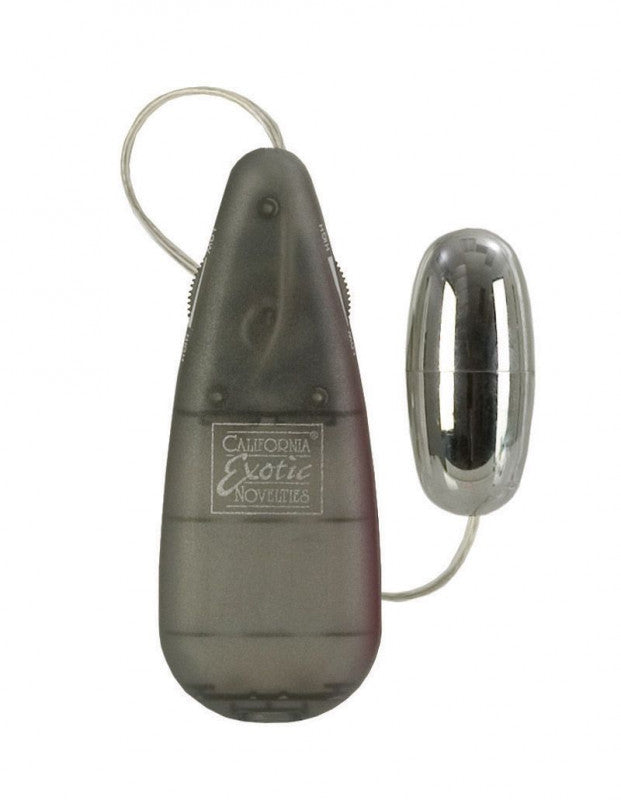 The sleek and compact stimulator is ade from silver-placed ABS and is attached to a teardrp shaped, hand-held plastic controller, with easy-slide controls. The multi-speed mini bullet measures 2" x 1" (5cm x 3cm), and delivers intense stimulation sensations for ultimate internal and external satisfaction.